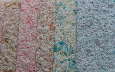 Жидкие обои – это натуральные волокна (целлюлоза, хлопок или шелк), смешанные со связующим веществом (акриловая дисперсия или клей КМЦ) и экологичным красителем. В декоративных целях в жидкие обои также добавляют мраморную, деревянную или кварцевую крошку, цветные флоки (мелкие кусочки акриловой краски) и другие дополнительные элементы. Отдельно продаются слюдяные блестки, которые добавляют в сухую смесь при желании.